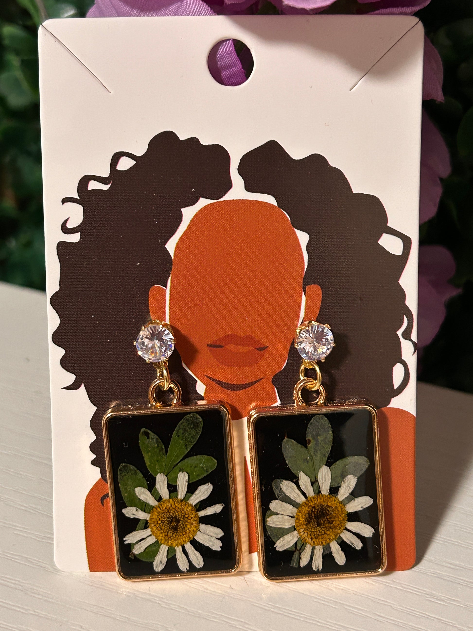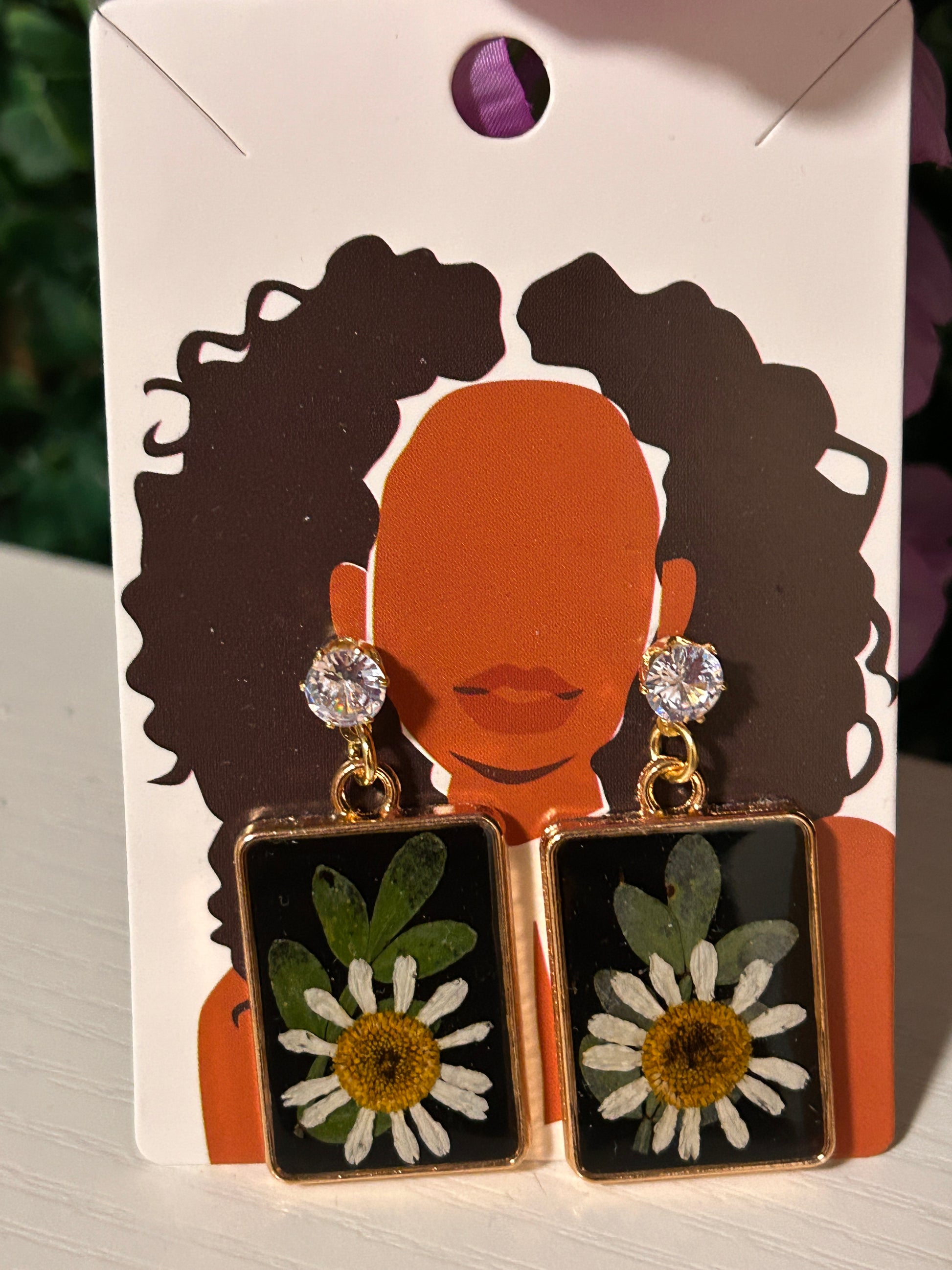 Black resin gold rectangle earrings