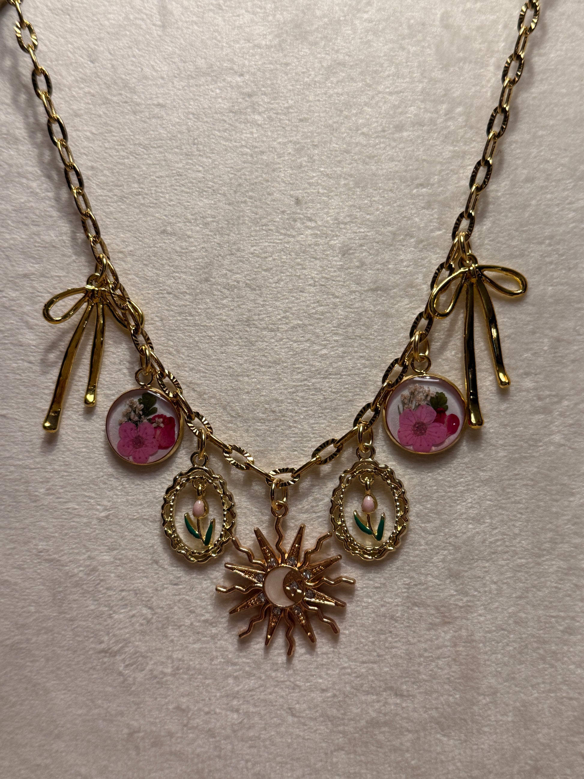 Pink forget me not charm necklace (#4)