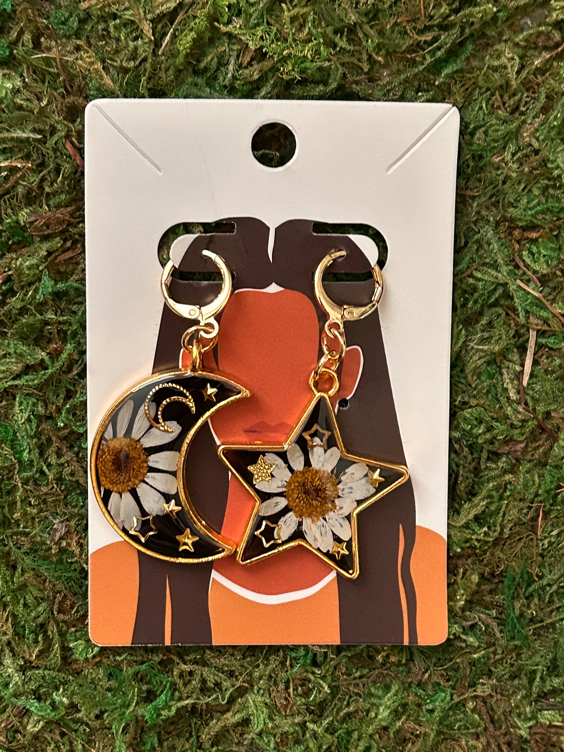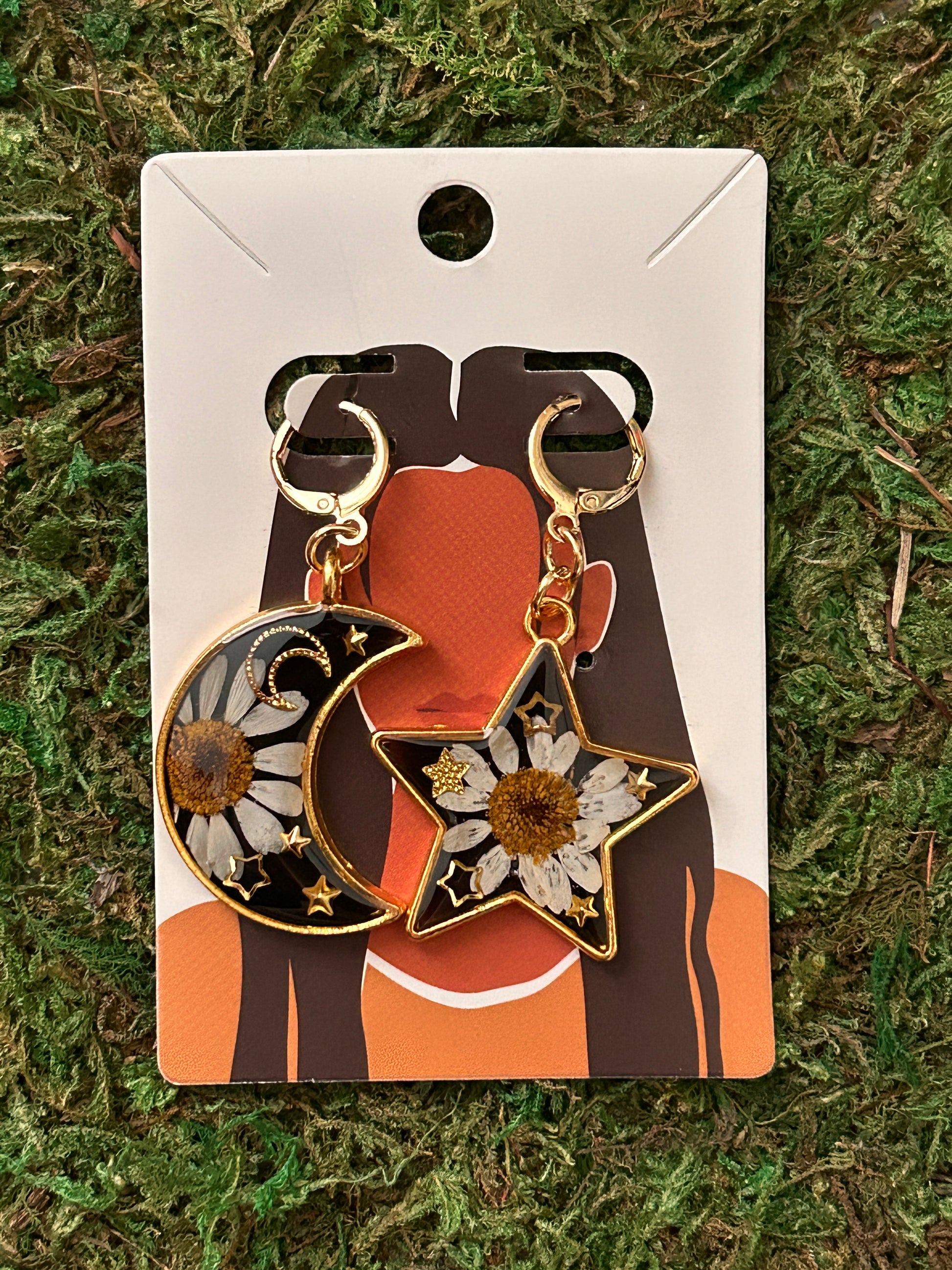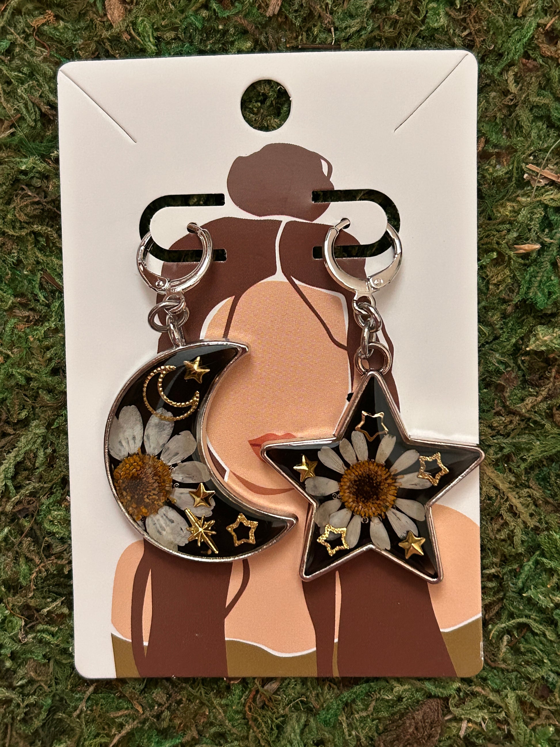 Star&moon earrings (black resin)